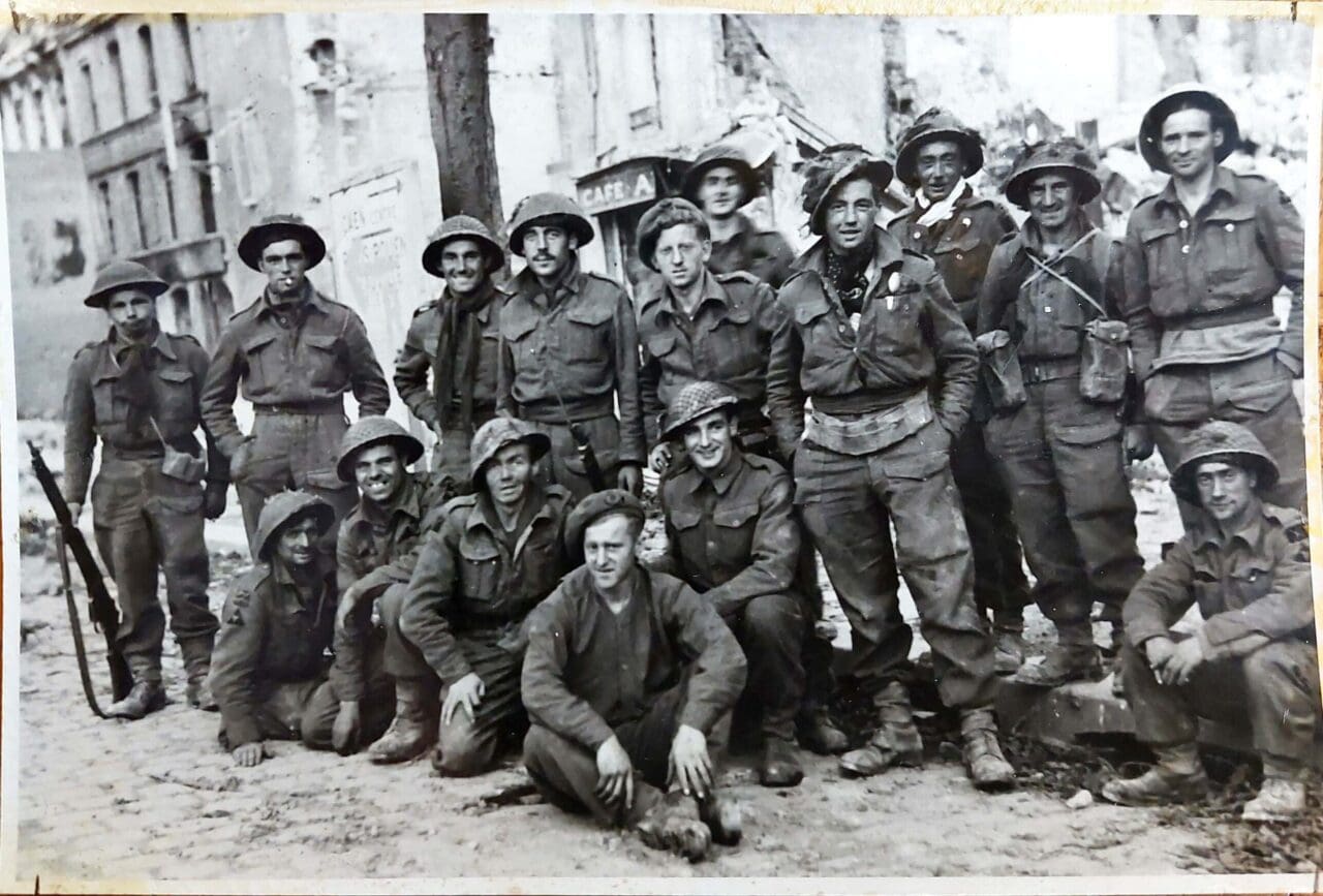 With the allied invasion of Europe in 1944, 1st battalion KOSB was there at the forefront, returning to France on D-Day, 6th June, landing at ‘Queen’ Beach. They fought through Normandy and around Caen until the town capitulated, and then advanced north through Belgium and Holland to the Rhine and Bremen.